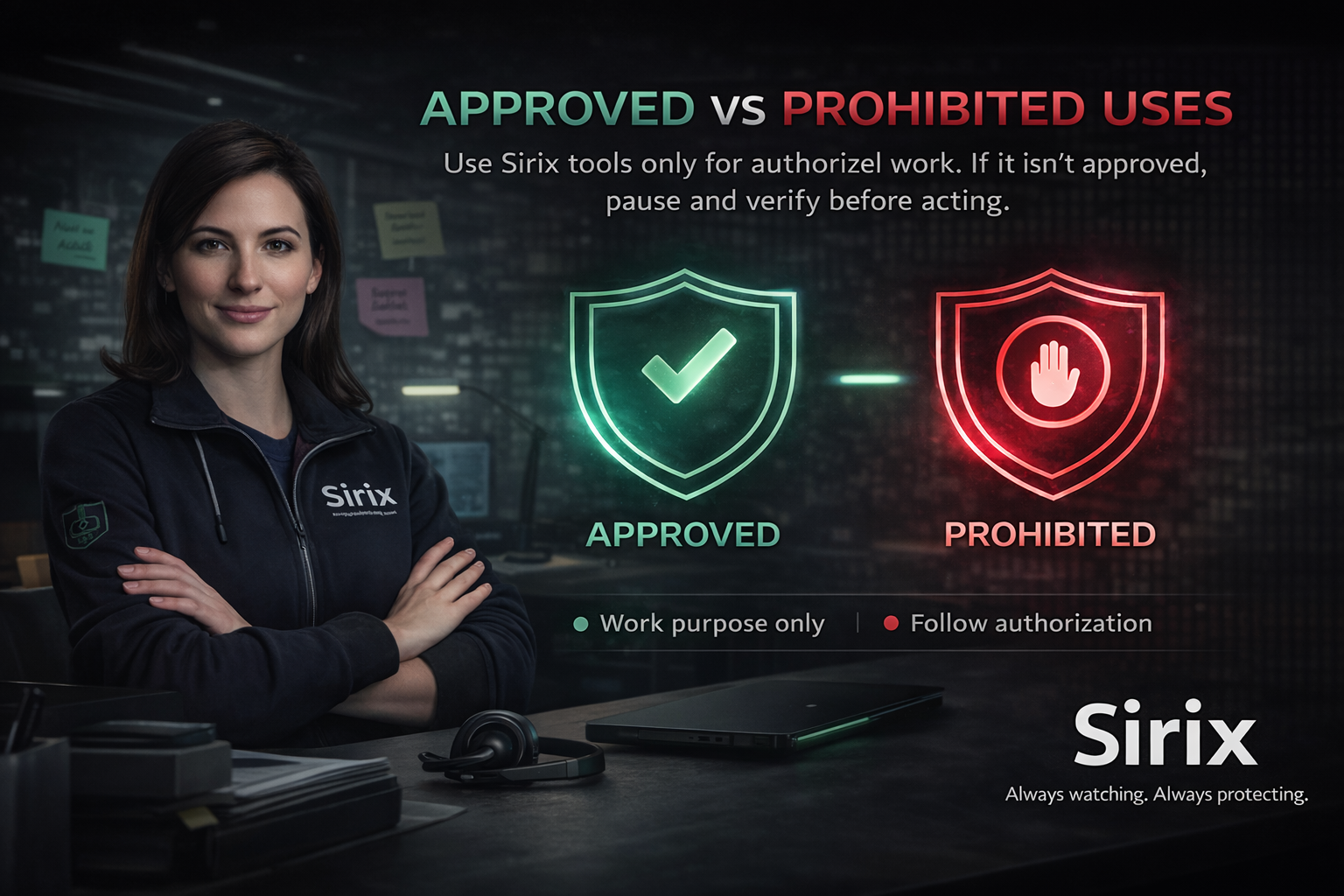 Use Sirix tools only for authorized work. If a use case isn’t approved, pause and verify before acting.